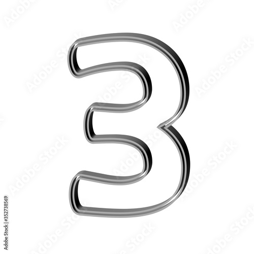 3D CARTOON STYLE NUMBER MADE OF DOUBLE SILVER METAL OUTLINES : 3 THREE