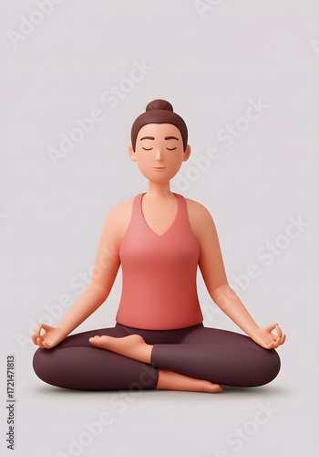 three-dimensional, cartoon, woman, meditation, yoga, peace, mindfulness, serenity, zen, calm, relaxation, wellness, health, spiritual, balance, harmony, inner peace, contemplation, concentration, pose, figure, character, illustration, graphic, design, isolated, studio, background, breathing, exercise, well-being, mental health, lifestyle, sedentary, seated, om, mudra, namaste, graceful, positive, energy, healing, sharpened, nirvana