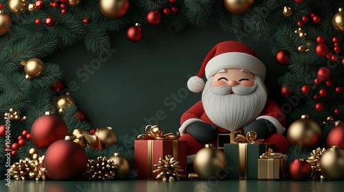 3D Cheerful Santa Surrounded by Holiday Decorations