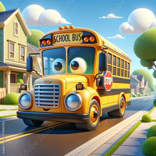 three-dimensional, classic, school, bus, suburban, street, yellow, transportation, school bus, vehicle, transport, education, travel, cartoon, car, stop, children, toy, illustration, isolated, ride, public, truck, auto, road, safety, automobile, student
