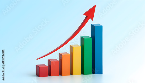 3D colorful bars in staircase shape with upward arrow symbolizing economic growth