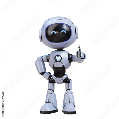 three-dimensional, cute, robot, giving, thumb, up, friendly, approval, android, ai, artificial, intelligence, future, technology, futuristic, science, fiction, mechanical, electronic, digital, character, design, happy, smiling, gesture, agreements, success, positive, concept, communication, feedback, excellent, good, great, well, done, support, help, assistance, machine, automation, computer, bot, cybernetic, creative, illustration, rendering, modern