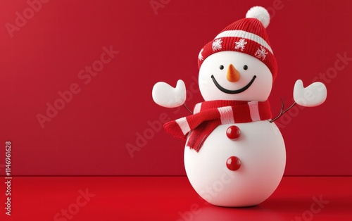 3D cute Snowman on bright red background
