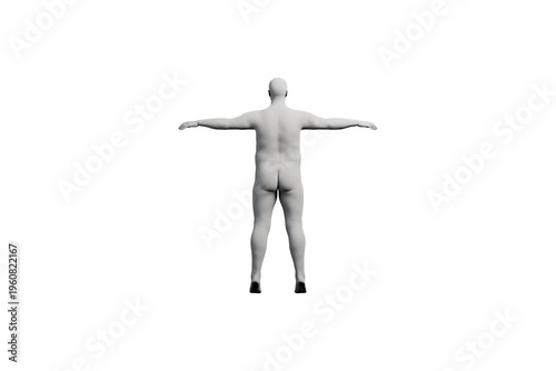 body, male, figure, anatomy, portrait, person, man, form, silhouette, isolated, strength, health, wellness, acceptance, confidence, expression, presence, human, weight, diversity, individuality, stature, posing, subject, vulnerable, three-dimensional, render, model, digital, art, photorealistic, mannequin, back, masculine, overweight, heavy, large, matte, flat, black, dark, white, background, studio, lighting, clean, illustration, character