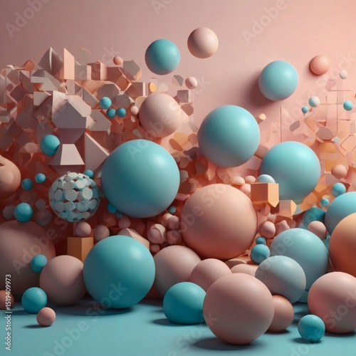 abstract, three-dimensional, geometric, background, floating, shape, pastel, gradient, modern, clean, minimal, creative, depth, design, sphere, cube, digital, motion, contemporary