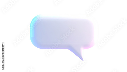 3D glossy pastel speech bubble icon with blue and pink gradient isolated on white background for communication and chat concept