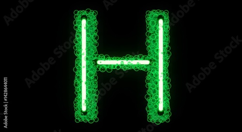 3D Glowing Neon Letter H – Bubble Font Alphabet in Fluorescent Green