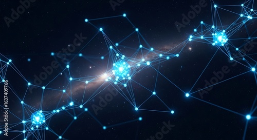 3d icon of abstract blue glowing interconnected network of nodes and lines in space, symbolizing data, technology, and connection