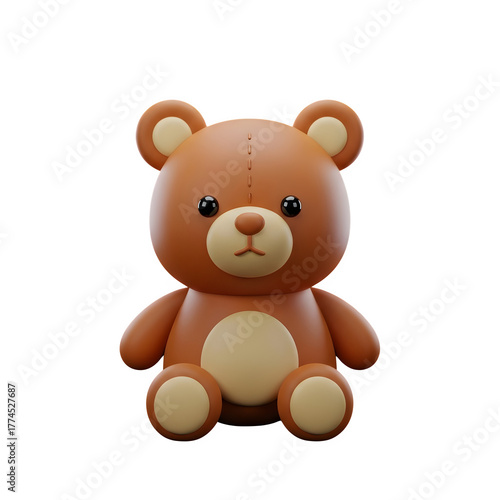 3d icon of cute brown teddy bear isolated on transparent background, a soft and cuddly toy