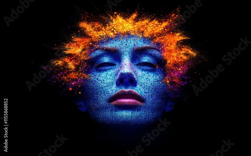 3D illustration Abstract representation of a digital human face in big data or cyber security