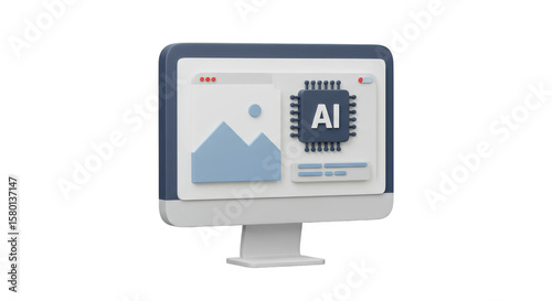 3D Illustration AI Tech Monitor Digital Innovation Machine Learning