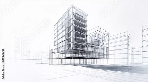 3D illustration Imagination architecture building construction perspective design, nice abstract modern urban landscape line drawing