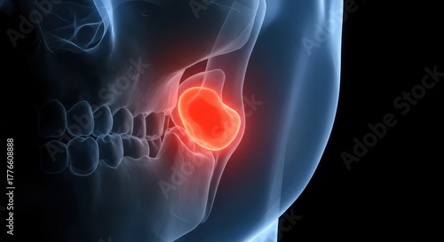 3d illustration of a tumor or lesion affecting the jawbone and teeth in a human head