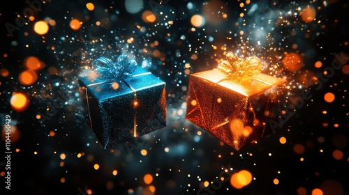 gift box, ribbon, bow, bokeh, glow, light, festive, holiday, celebration, sparkle, magic, shiny, decorative, present, surprise, decoration, luxury, party, festivity, art, design, visual, creative, bright, ornament, colourful, vibrant, happy, elegant, stunning, atmosphere, special occasion, gift, wrapped, ornate, texture, pattern, shine, digital artwork, graphic, fancy, chic, aesthetic, trend