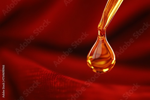 oil, dripped, pipette, red, velvet, gold, liquid, purity, richness, beauty, cosmetic, serum, essence, luxury, care, skin, treatment, health, wellness, nourishment, ingredient, natural, organic, extract, therapy, aroma, fragrance, shiny, smooth, texture, closeup, detail, macro, laboratory, science, research, experiment, analysis, sample, fluid, amber, precious, expensive, elegance, glamour, style, design, art, still