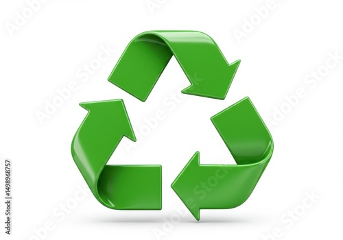 3D Illustration of Green recycling symbol isolated on white background