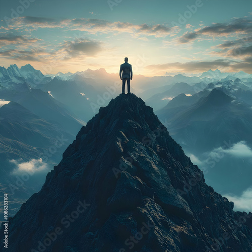3D Illustration Success Mountain Peak Achievement Businessman