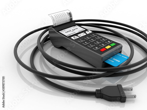 3d illustration Swipe machine connected charging cable