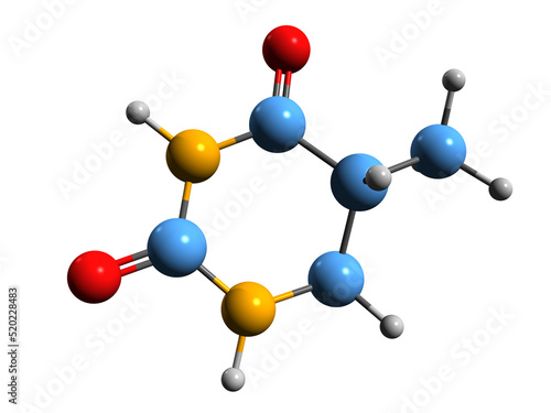 3D image of Dihydrothymine skeletal formula - molecular chemical structure of thymine intermediate isolated on white background