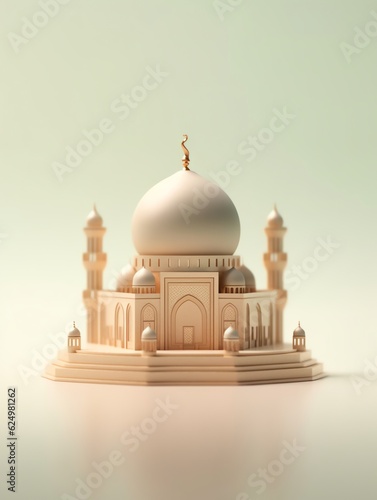 3D islamic mosque illustration for banner social media, gold, minimalist, eid fitr, eid adha, ramdhan kareem, muharam, islamic new year