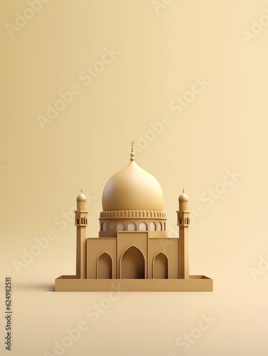 3D islamic mosque illustration for banner social media, gold, minimalist, eid fitr, eid adha, ramdhan kareem, muharam, islamic new year