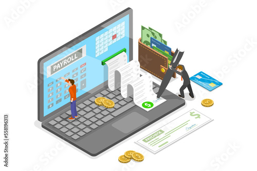 3D Isometric Flat Conceptual Illustration of Payroll System