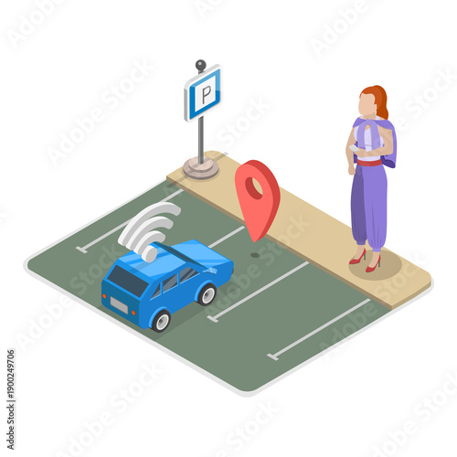 3D Isometric Flat Illustration of Autonomous Vehicle. Item 1
