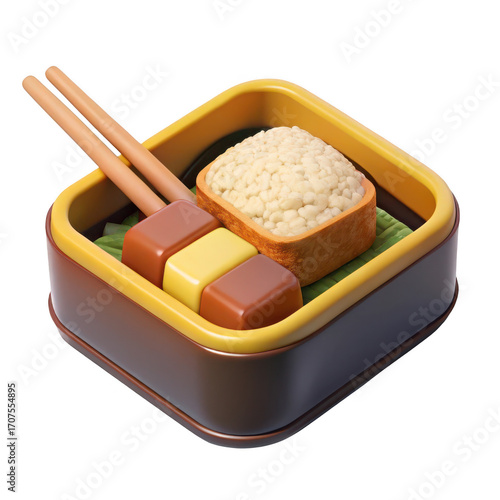 3d japanese bento box meal with rice and tamagoyaki isolated on transparent background