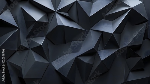 3D low-poly background with black triangles, simple shapes, and a dark grey color