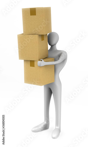 three-dimensional, box, cardboard, heavy, hold, human, industrial, merchandise, paper, person, shipping, standing, shipment, men at work, brown, cargo, cardbox, cartoon, closed, concept, client, delivery, distribution, effort, fragile, illustration, isolated, man, pack, package, people, render, service, signs, storage, store, supply, transport, warehouse, white, work