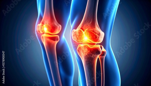anatomy, human, knee, pain, bone, joint, medicals, three-dimensional, illustration, painful, injury, inflammation, red, blue, skeleton, muscle, graphic, science, health, disease, treatment, diagnostic, health care