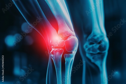 3d medical x ray of knee pain and arthritis inflammation, athlete s tendon damage, copy space