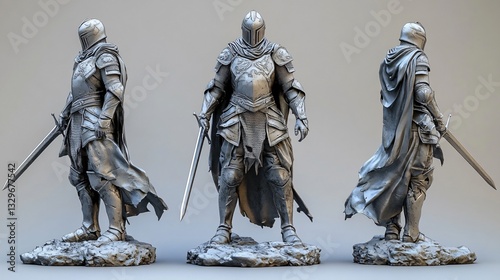 3D Medieval Knight Soldier Statue in Metal Arm for Creative Designs
