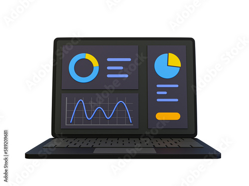 3d minimal marketing strategy concept. business analysis. marketing data analysis. Laptop with statistics data. 3d illustration.