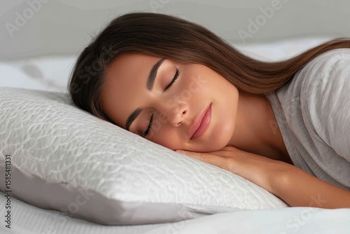 sleeping, comfort, pillow, bed, rest, relaxation, calmness, peaceful, serene, indoor, bedchamber, grey background, studio shot, wellness