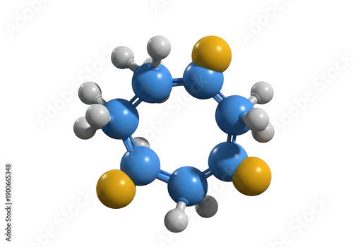 3D molecular structure model with blue and yellow spheres isolated on transparent background