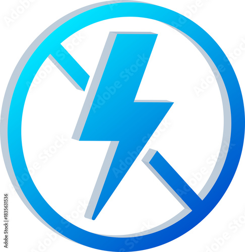 3D No Flash Icon with Lightning Symbol Crossed Out