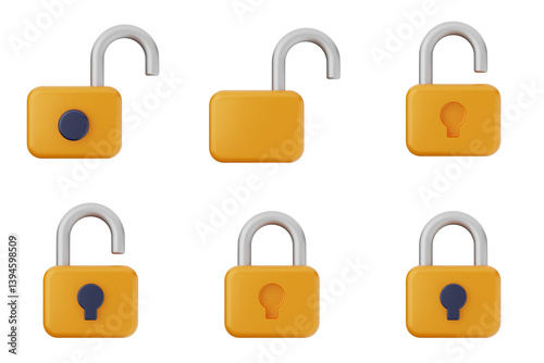 3d padlock secure safe key system private icon set bundle