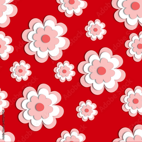 3D pink flowers on a colored background. Seamless background. Stylish creative wallpaper.