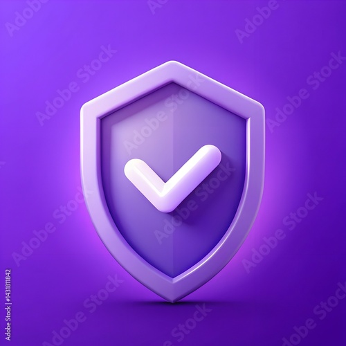 three-dimensional, purple, shield, white, checkmark, icon, security, trust, verification, design, vector, graphic, protection, safety, assurance, secure, modern, flat, symbol, digital, web, app, creative, vibrant, illustrative, validation, defense, safeguard, trendy, visual, stylish, functional, decorative, minimal, artistic, layout, privacy, dependability, confirmation, integrity, technology, authentication, guarantee, system