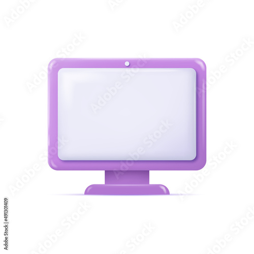 3d purple shiny monitor icon. Vector
