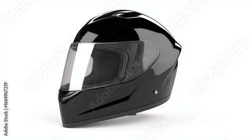 3D realistic full face motorcycle helmet glossy black (clean modern detail, white isolated background