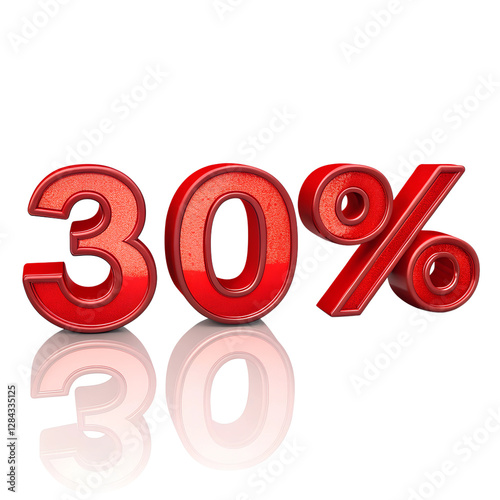 3D Red 30% Discount Symbol with Reflection on Transparent Background