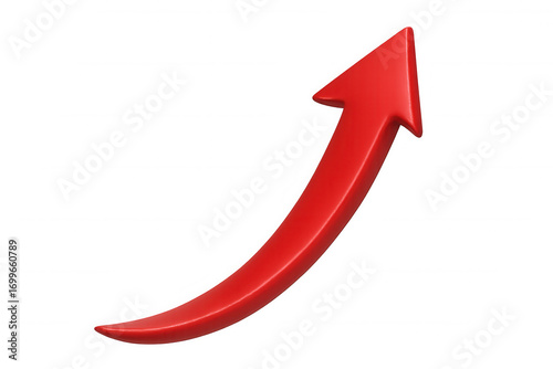 3d red arrow curving upward, representing business growth and positive trending trajectory against transparent backdrop
