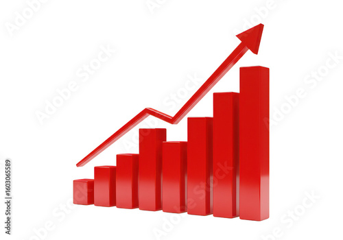 three-dimensional, bar, chart, red, growth, upward, trend, arrow, business, finance, datum, visualisation, increase, progress, success, economy, statistic, report, presentation, isolated