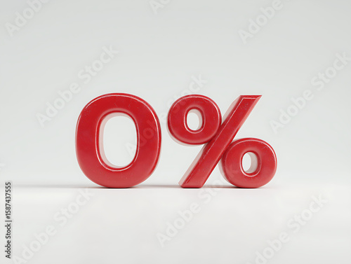 3D Red Numeric 0% Symbol in Modern Business Marketing for Discount Promotion and Financial Analysis