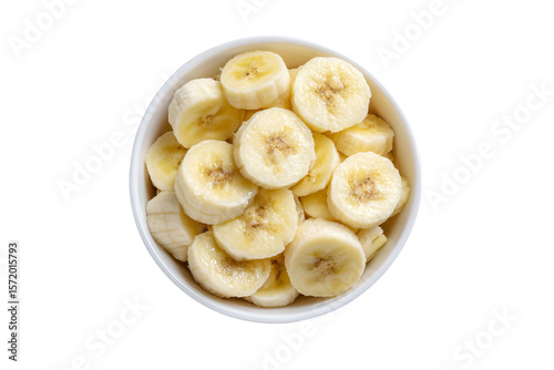 3D Render a bowl of sliced bananas on a white surface