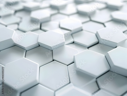 3d render, abstract white background with hexagon pattern for technology concept. Abstract futuristic wallpaper with 2D and 45 degree angle illustration of geometric shapes on light grey surface. Back