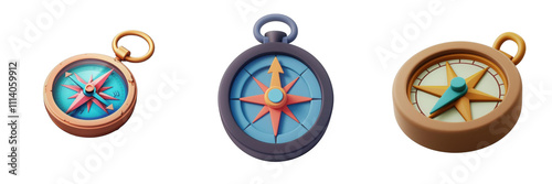 3d render compass isolated on transparent background Cartoon Illustration in plastic style