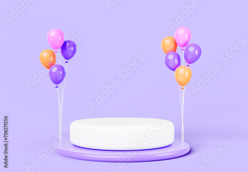 three-dimensional, render, dais, display, balloon, children, birthday, party, stage, platform, product, festive, white, event, scene, pedestal, racked, banner, background, studio, decoration, presentation, holiday, light, children, celebration, surprise, gift, prize, pink, purple, orange, circle, ballon, anniversary, colours, shopping, sale, discount, winner, ceremony, trophy, design, giveaway, show, award, announcement, place, realistic, illustration